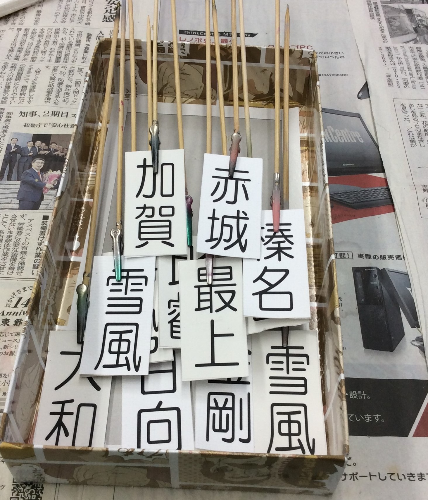 撮影後、前日に香坂きのさんの作ったボードに並べて