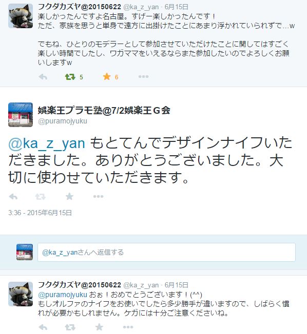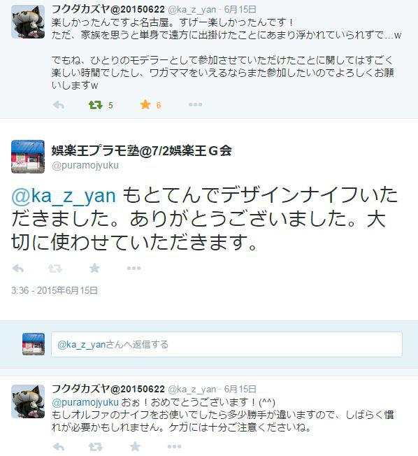 香坂きの先生主催のもとてん(模型トークショー展示会)でフクダカズヤさんからデザインナイフ頂きました。大切に使うぞ。実はバンダイの川口名人も昔から使っていたものだそうです。 フクダカズヤさんの紹介http://twitter.com/ka_z_yan こっちも良かったな 皆さんプラモ塾の為にひで(プラモ塾)さんへでサインもらっときましたよ