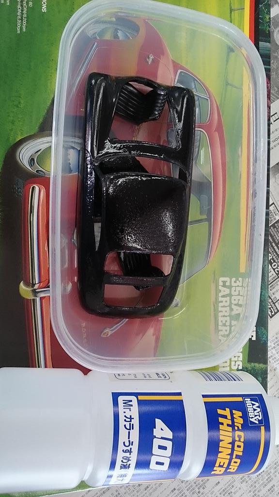 こんな感じでシンナー漬けに 少し足りてませんが、その辺はスルーで(時々容器を振ってみたり…)